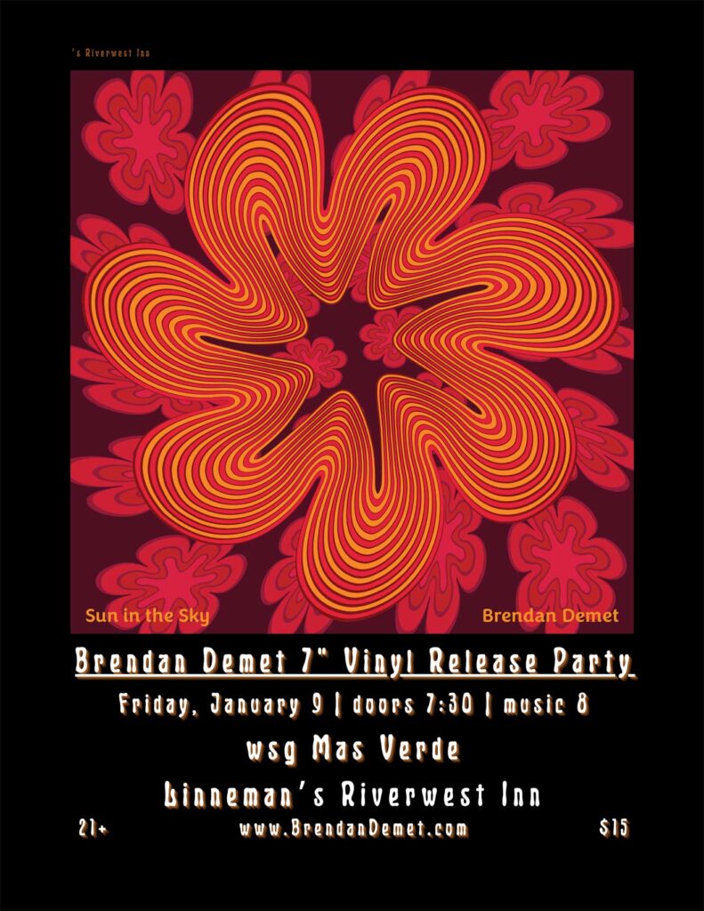 Brendan Demet is celebrating the release of two new songs, “Sun in the Sky” and “Candlelight” (plus his birthday) with a performance featuring the musicians who performed on the tracks, Tomas Goldsmith on saxophone and DL Matthews on drums, along with Patrick Van Bibber on guitar and Michael Ritter on bass.