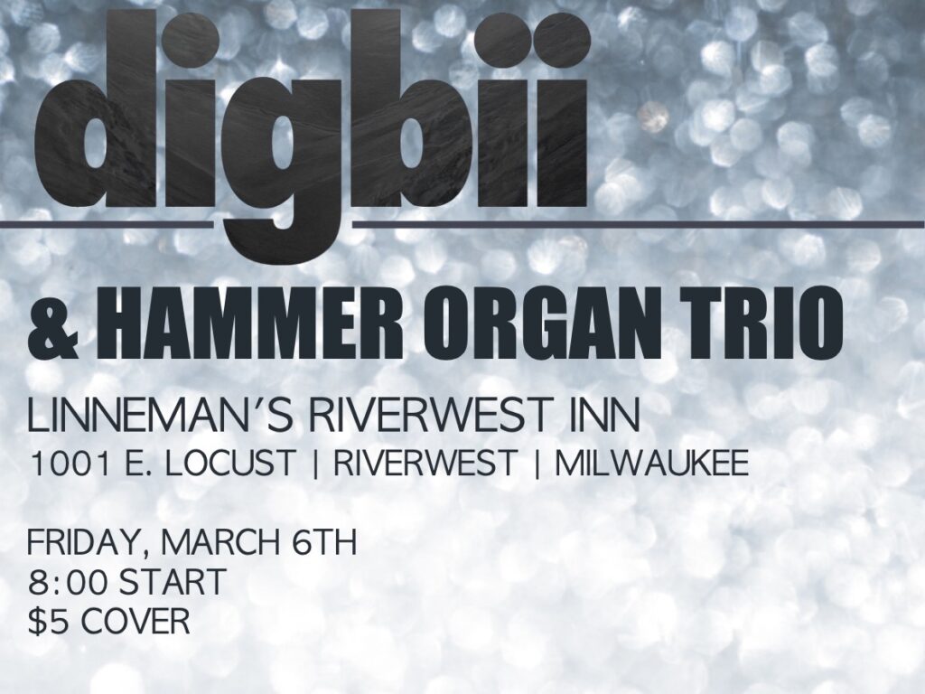 The Milwaukee roots in Digbii run deep. Dave and Brian have been stalwarts in the jazz scene for decades as members of The Clams / Clamnation among other groups. Saul is an up-and-coming mutli-instrumentalist and founding member of the “frog-rock” band, Fightin’ Bob. Craig has been playing in and around Milwaukee for nearly 20 years after being part of Michigan-based jam band Assembly Required for many years. Digbii was formed in 2014 as an outlet for 20 years of compositions that had not found a home in other bands.”