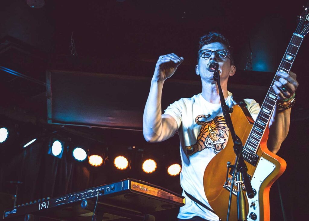 Dancing, sweating, and joy are the goals of Drive-a-tron, but a closer look at the song lyrics may surprise you with stories of complex characters and situations. The excitement of the music comes through on stage with Paul performing on different instruments, often with synced videos and friends, and encouraging audience members to join in. Everyone who attends a Drive-a-tron show is invited to be “in the band”.