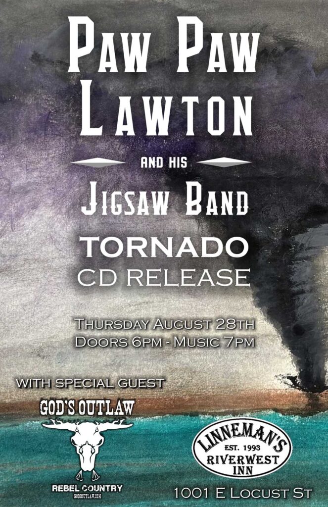 PAW PAW LAWTON and his Jigsaw Band will be playing at Linneman’s to mark the release of Tornado! Joining us will be our good friends the God’s Outlaw! This will be an early show staring at 7pm!
