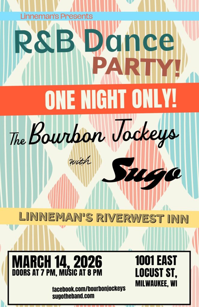 The Bourbon Jockeys are a Milwaukee based band known for their energetic mix of vintage R&B and Blues. Formed in August 2013, the band includes vocalist Skip, guitarist Graff, and bassist Lemonie Fresh. They are recognized for their high-energy rock & roll sound, drawing influence from late 50’s rockabilly, early 60’s garage rock, and 80’s punk rock. The band’s shows feature spirited mixes of classic soul and blues infused tunes, delivered with infectious enthusiasm.